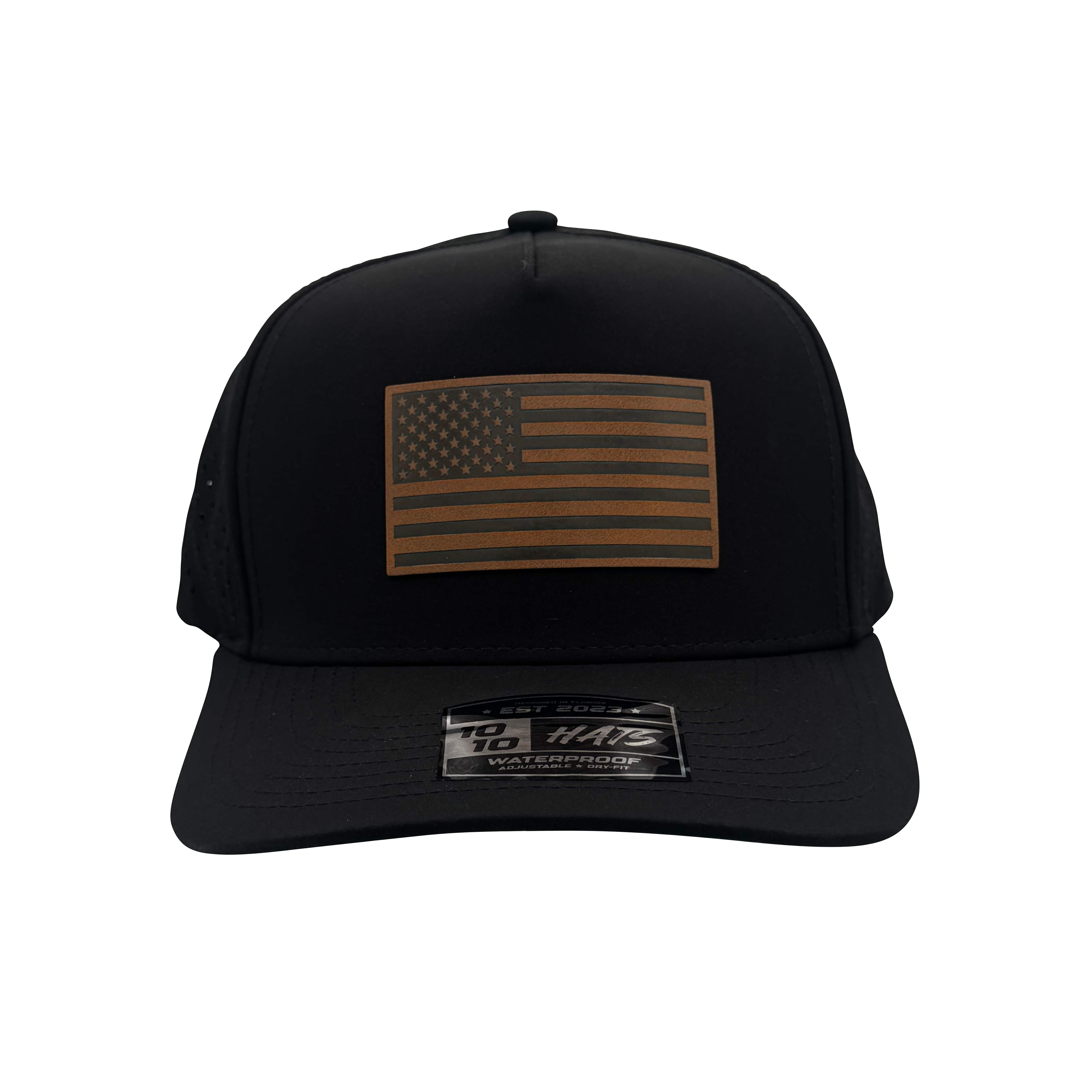 5 Panel Hat with Leather American Flag Patch
